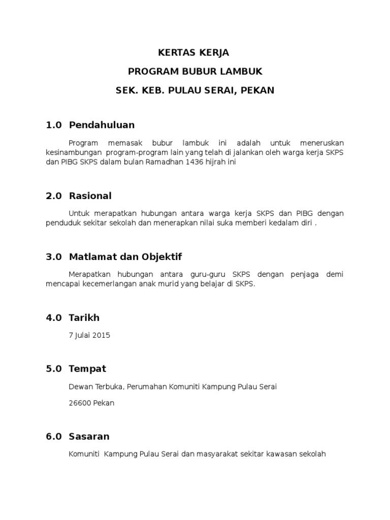 Contoh Kertas Kerja Program Bubur Lambuk Pdf